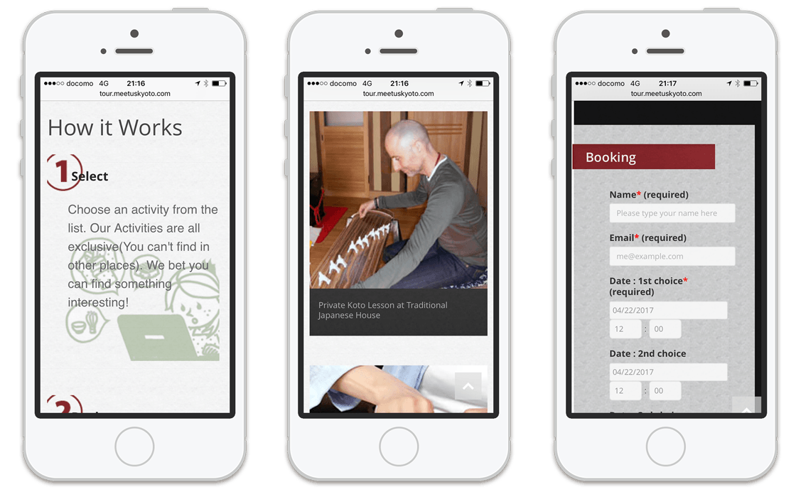 外国人観光客向けに、京都の伝統工芸や様々な体験を提供するECサイト。
